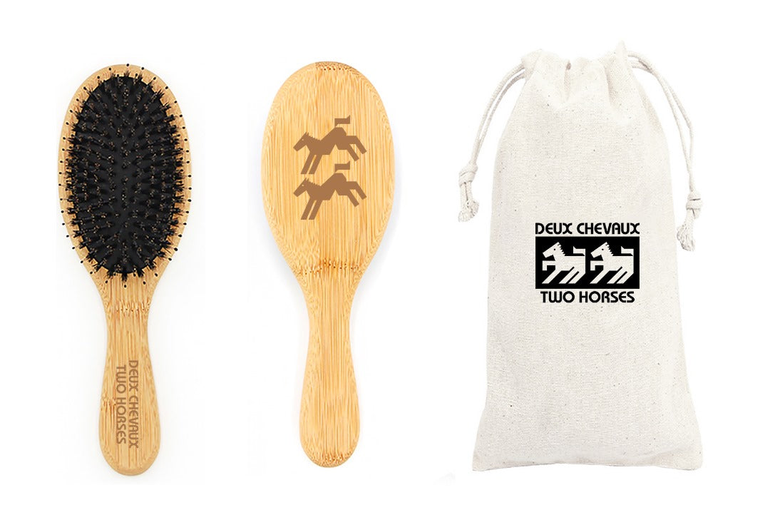 Les brosses à poils de sanglier répartissent doucement les huiles naturelles du cuir chevelu de la racine à la longueur, aidant à nourrir les cheveux, à améliorer la brillance et à améliorer la texture globale des cheveux. Les poils stimulent le cuir chevelu sans tirer, ce qui favorise la circulation et un environnement de cuir chevelu plus sain. Comprend un sac de rangement 100 % coton.