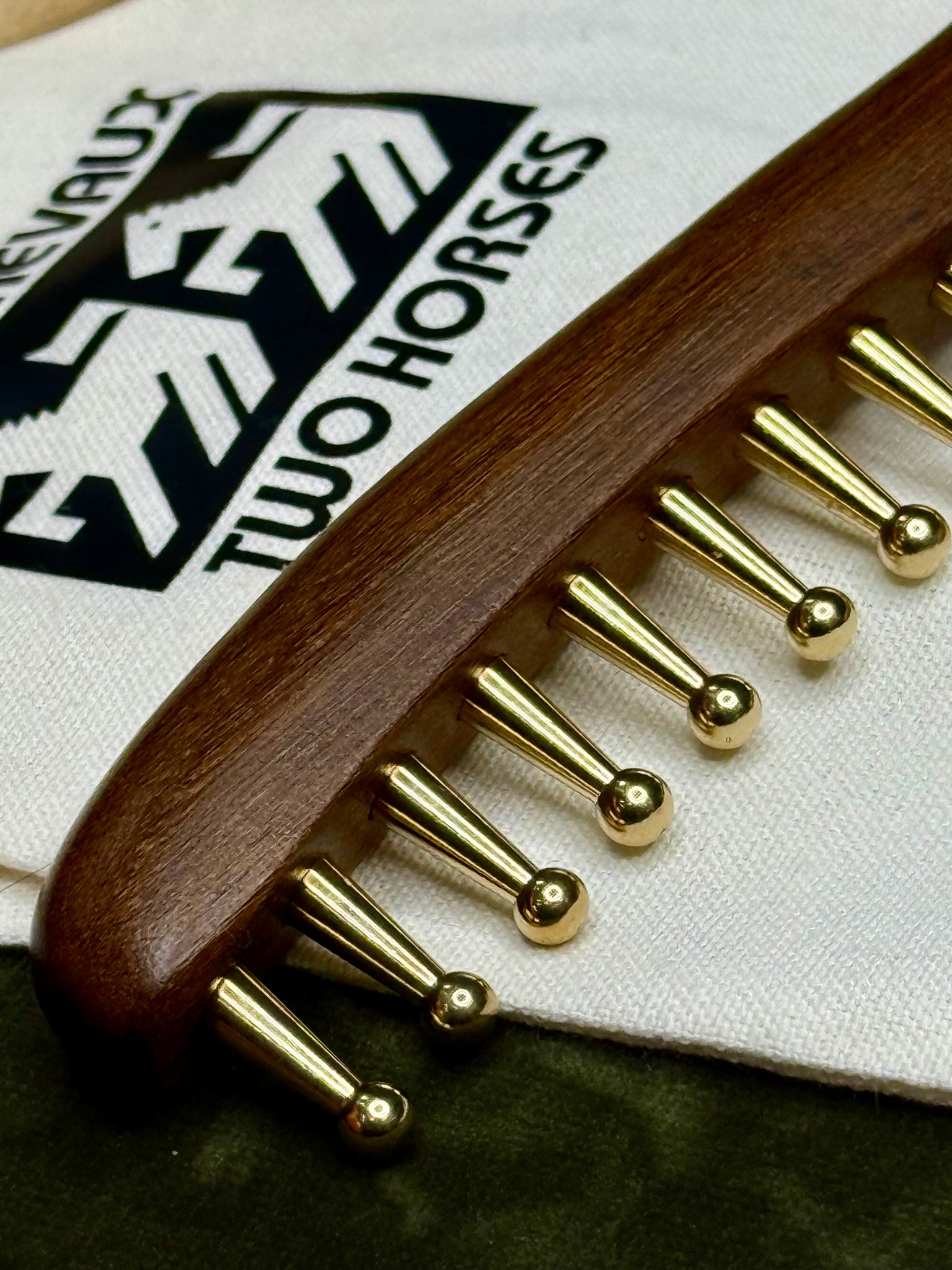 Présentation d'une collaboration entre YYH et Two Horses, cette dent de cuivre solide et ce peigne en bois de santal est l'outil de massage ultime.